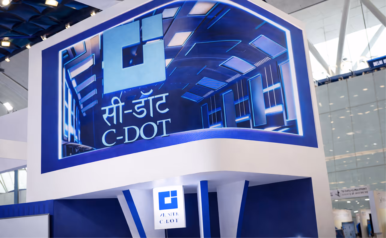 C-DOT needed an exhibition presence that matched the scale of their 5G and 6G innovations. Conventional screens and banner standees couldn't hold the attention of global policymakers, CEOs, and telecom leaders walking past hundreds of booths at Asia's largest digital technology forum.